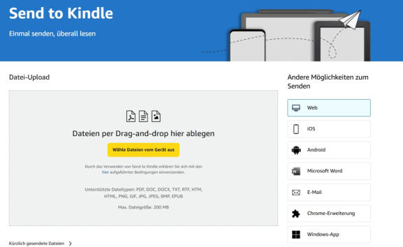 Schritt 2: Rufen Sie die Internetseite „Sent to Amazon Kindle“ © auf