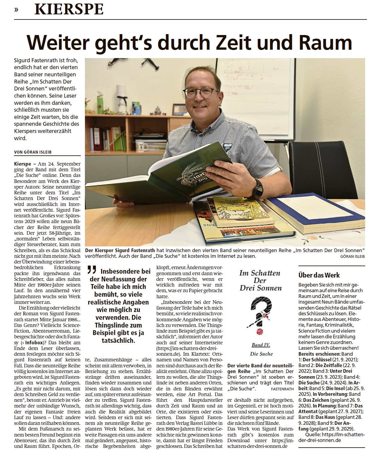 Artikel in der Meinerzhagener Zeitung vom 6. Oktober 2024